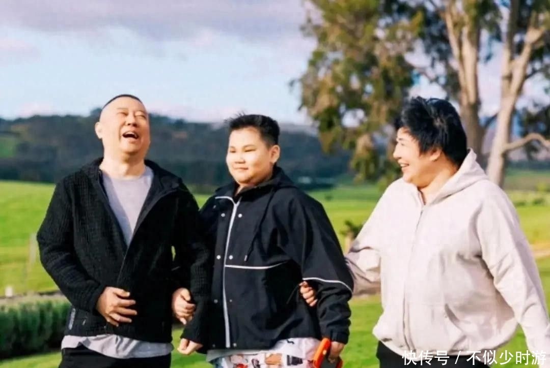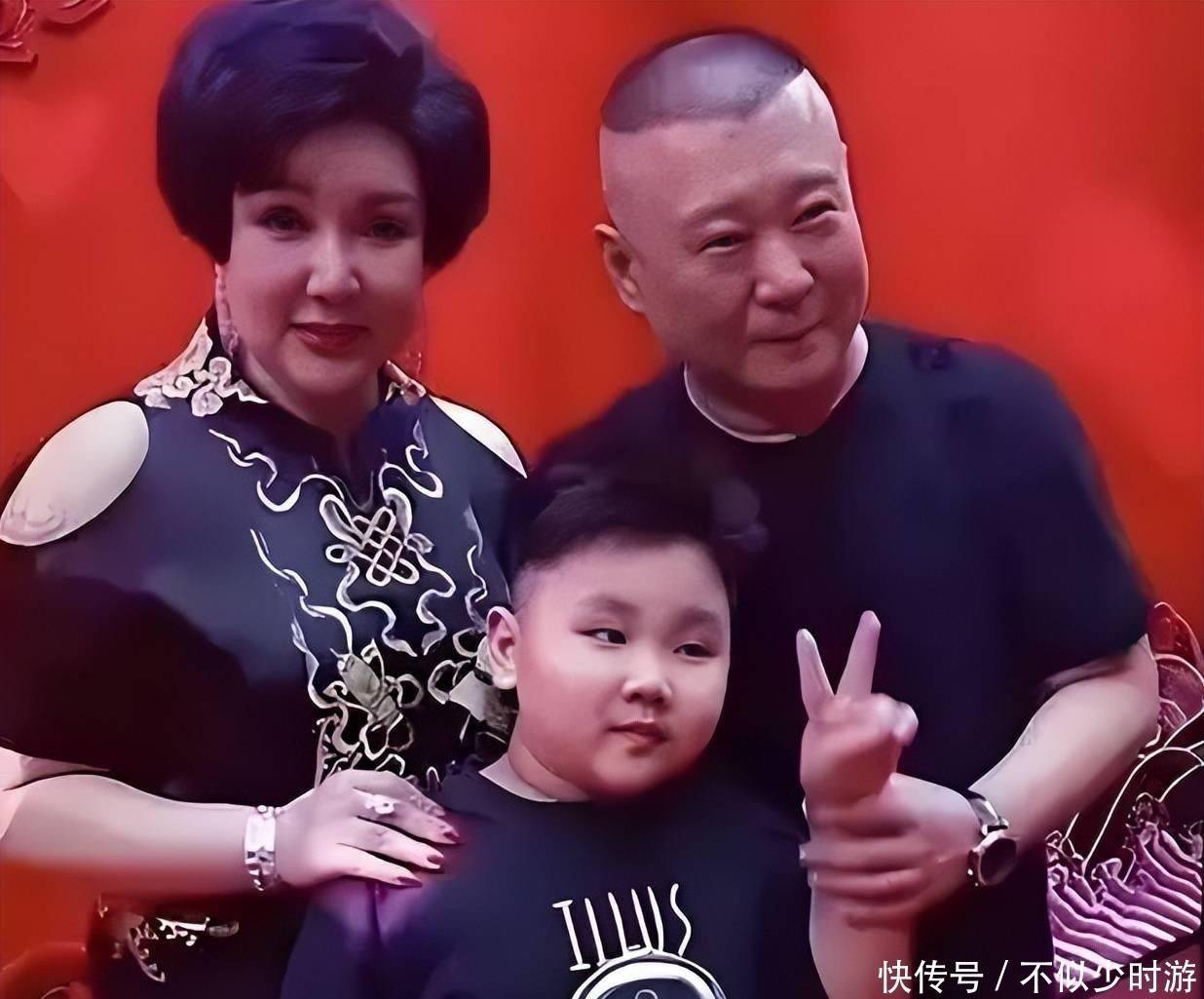 站在两位家长之间,体型甚至明显超过了母亲王惠,反倒是郭德纲成了全家最瘦的一位。